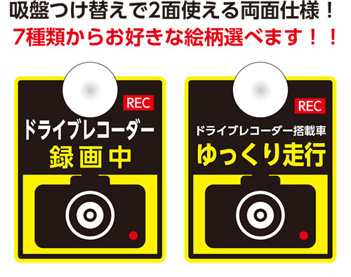 楽天市場 カーサイン吸盤付き 2面使えるリバーシブルタイプ ドライブレコーダー録画中 後方録画中 前後方録画中 ゆっくり走行 安全運転 看板 ステッカーの やまカン