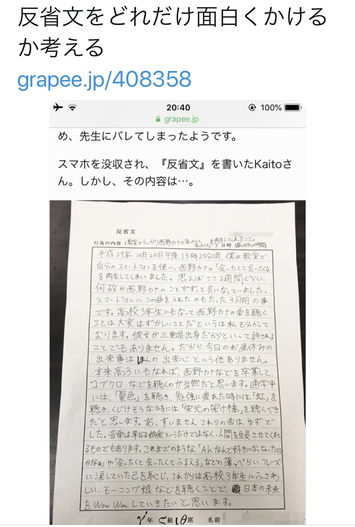 高校生 学校 退学になりそう 理由は センスがあり過ぎる反省文だった Grape グレイプ