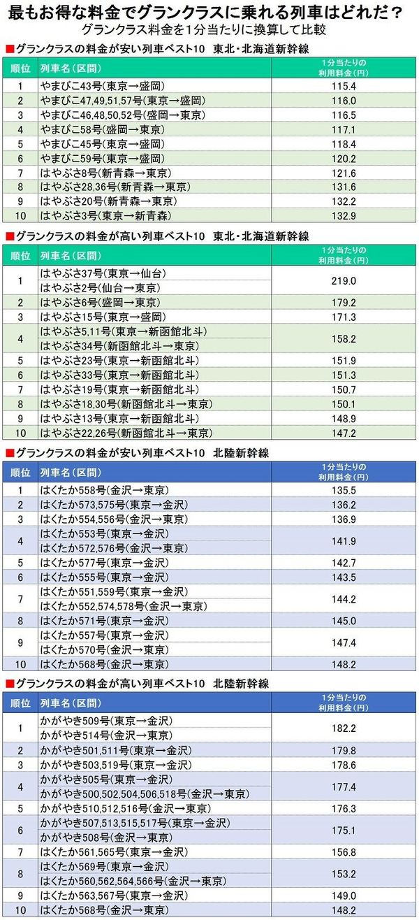最も割安な グランクラス はどの新幹線 新幹線 東洋経済オンライン 経済ニュースの新基準