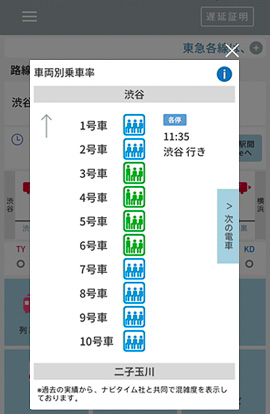 画像 東急電鉄 入場規制の通知や車両別混雑度の表示に対応した 東急線アプリ 8月21日リニューアル 平日の田園都市線混雑度を車両別に6段階表示 4 4 トラベル Watch
