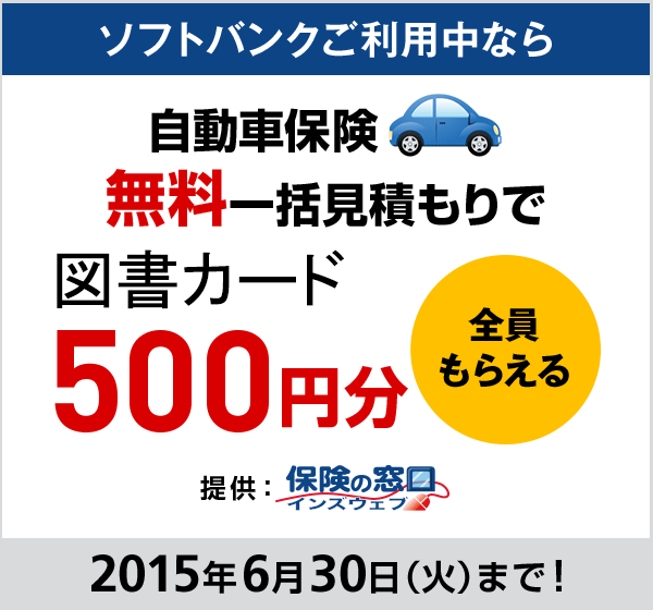 図書カード500円分プレゼント 自動車保険無料一括見積もりサービス スマートフォン 携帯電話 ソフトバンク