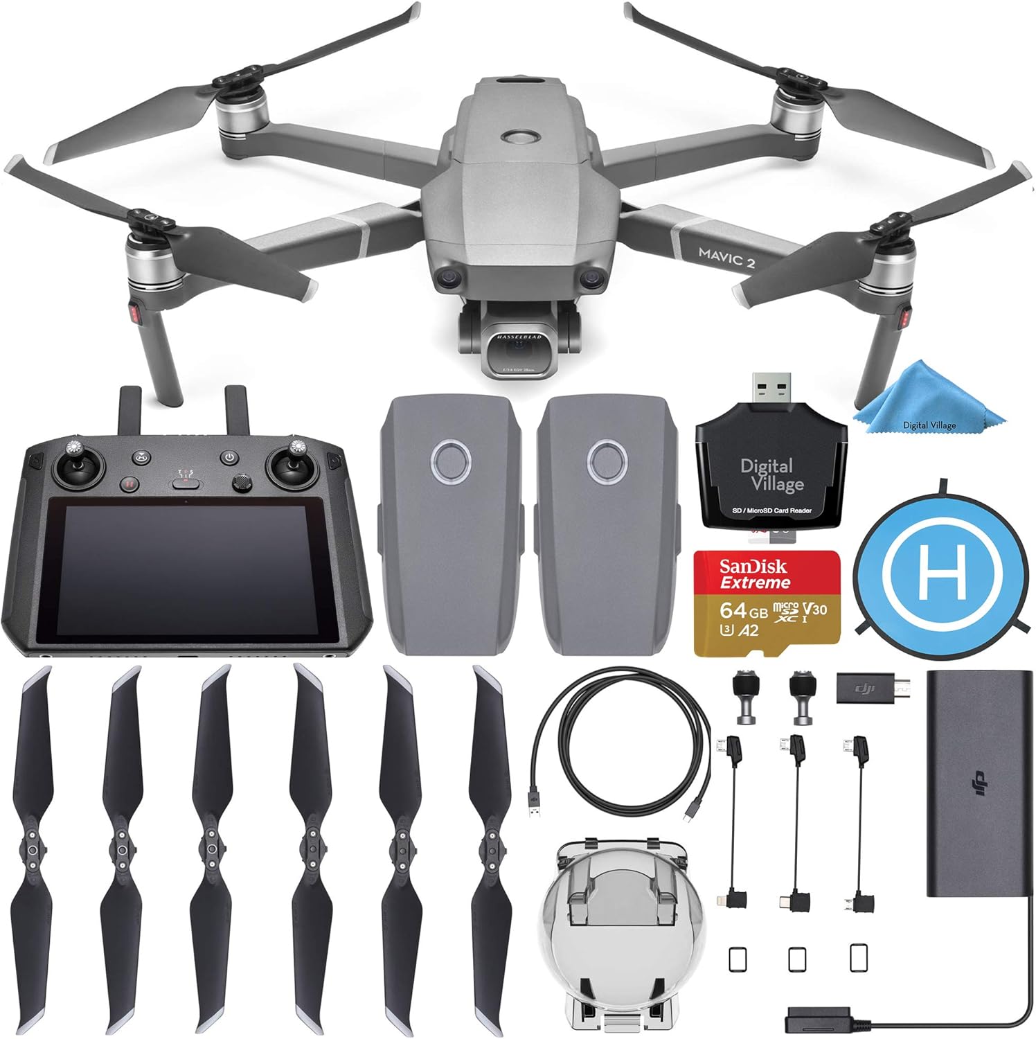 Dji Mavic 2 Pro With Smart Controller With 64gb Memory Card Extra Battery Propeller Guard Cleaning Kit And More Essential Bundle Newegg Com