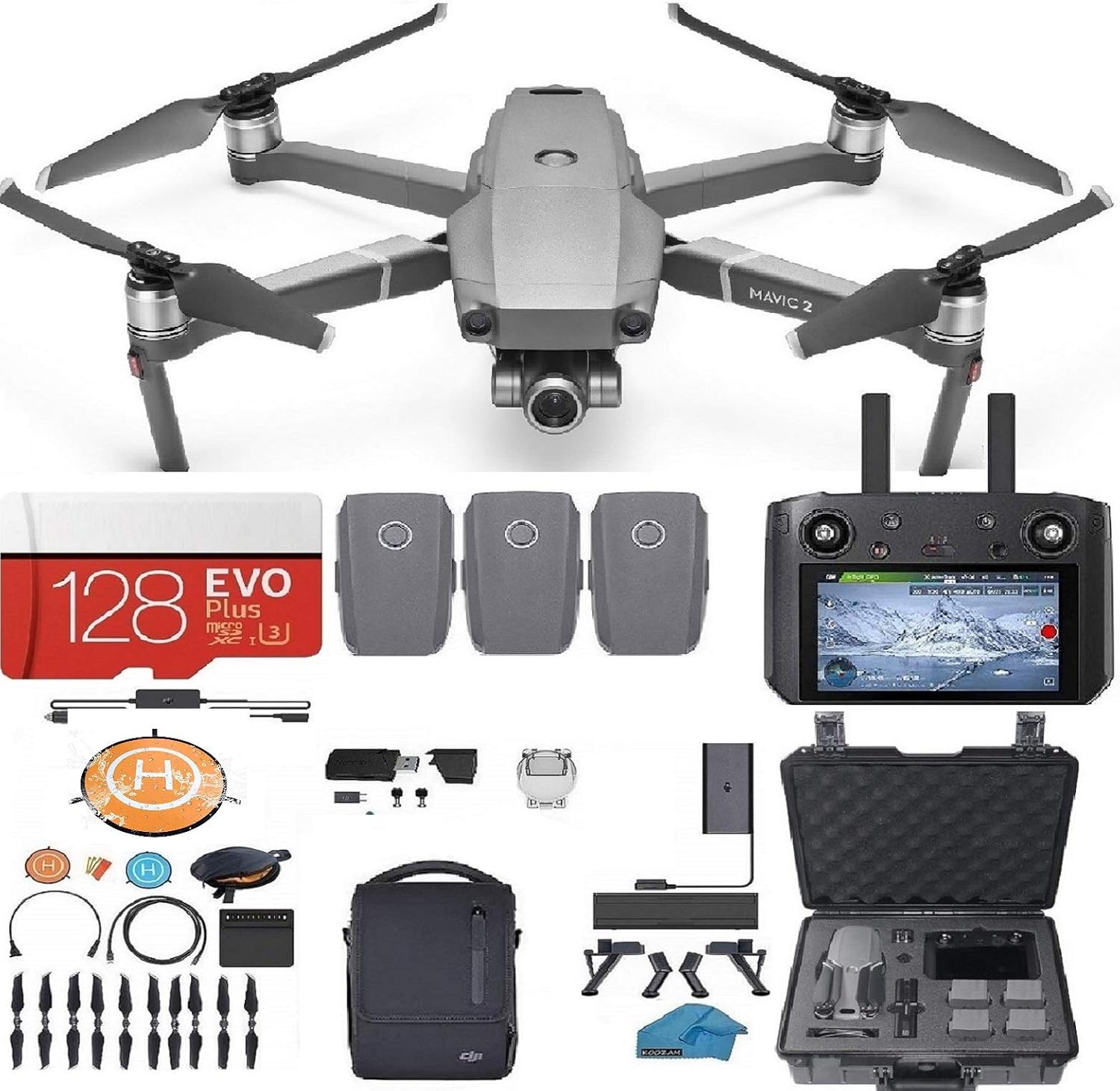 Amazon Com Dji Mavic 2 Zoom Drone Quadcopter Fly More Combo With Smart Controller Built In Monitor 3 Batteries Case 128gb Sd Card With 24 48mm Optical Zoom Camera Bundle Kit With Must Have