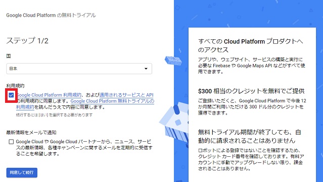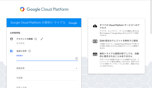 アカウント登録 無料トライアル Google Cloud Platform